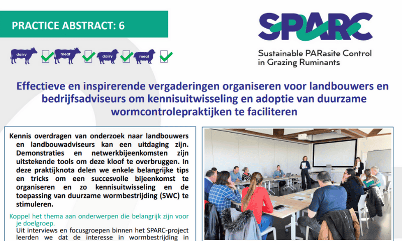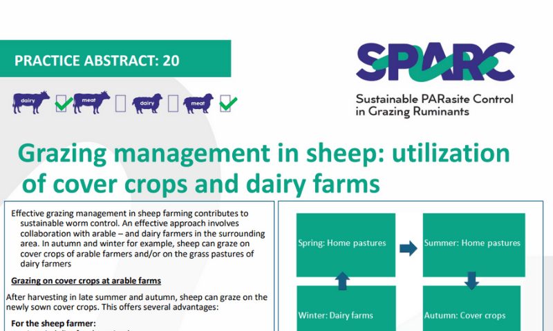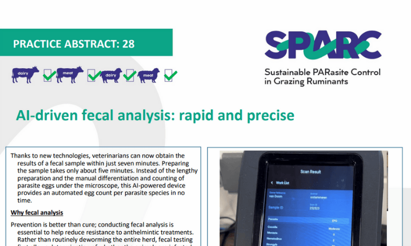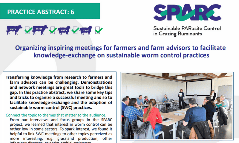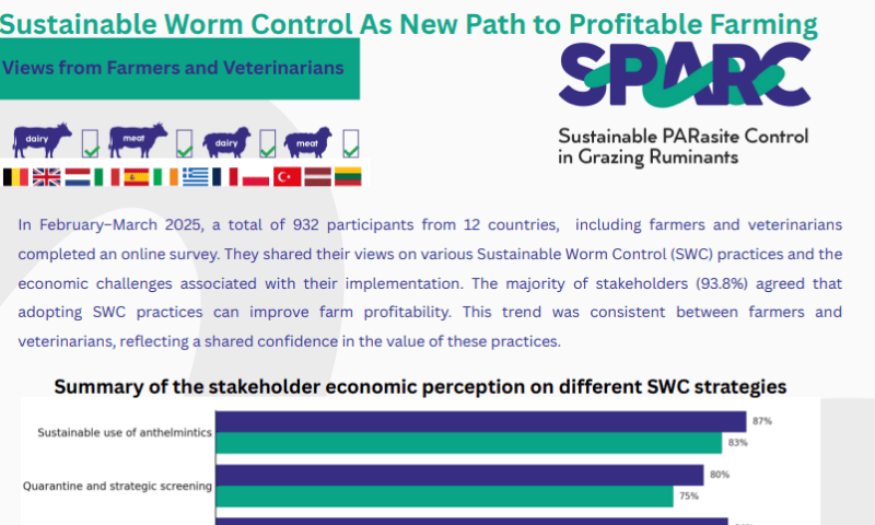 The Laboratory for Parasitology of Ghent University has extensive experience in integrated parasite control in cattle. We combine different approaches to reduce production losses due to helminth infections and to delay anthelmintic resistance. Methods were developed to improve worm control in cattle, including strategic treatment regimens, experimental vaccines and improved diagnosis. Knowledge about the farm-specific economic impact of worm infections and the effect of grazing management on worm infections allows us to provide advice on worm control in a farm-specific context. To improve the acceptance of our advice by farmers and veterinarians, we identified factors that influence the behaviour of livestock farmers and their adoption of sustainable worm control practices. The combination of sustainable worm control and a better understanding of factors that determine farmer and veterinarian decisions related to worm control will result in more cost-effective control strategies.