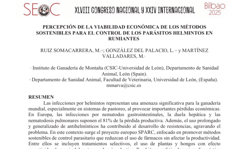 The Spanish National Research Council (CSIC) is the main agent responsible for implementing the Spanish System for Science, Technology and Innovation. One of its centers is the Institute of Mountain Livestock, or “Instituto de Ganadería de Montaña” (IGM). The mission of the IGM is to generate the scientific knowledge necessary to improve the sustainability of ruminant livestock production through a multidisciplinary approach, including health, nutrition, production, etc. The scientific activity of the Department of Animal Health is focused on interdisciplinary research on problems of parasitic and infectious etiology of high health and economic interest affecting herbivores, with special attention to ruminants. In particular, the Helminth Research Group is focused on studying the problem of resistance to anthelmintic drugs and on finding alternative solutions to parasite control, from new molecules or natural compounds to more sustainable methods that reduce the use of anthelmintics.